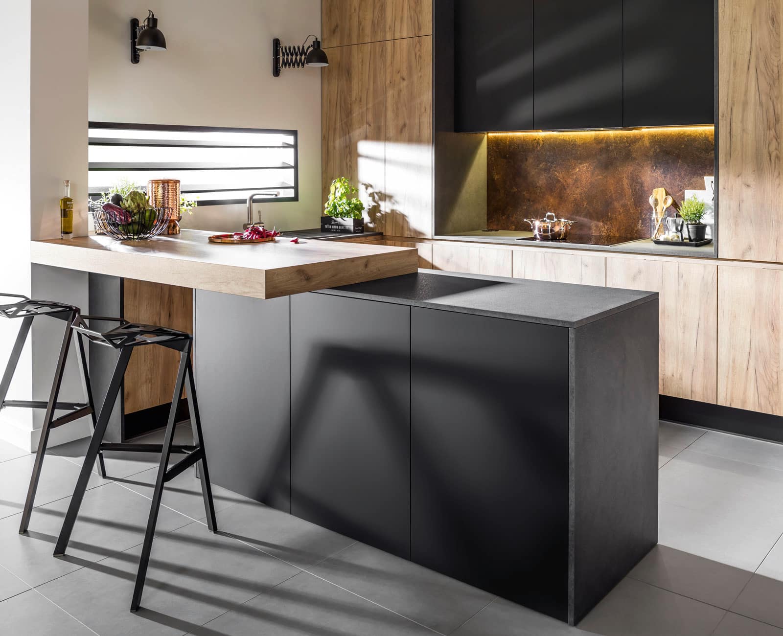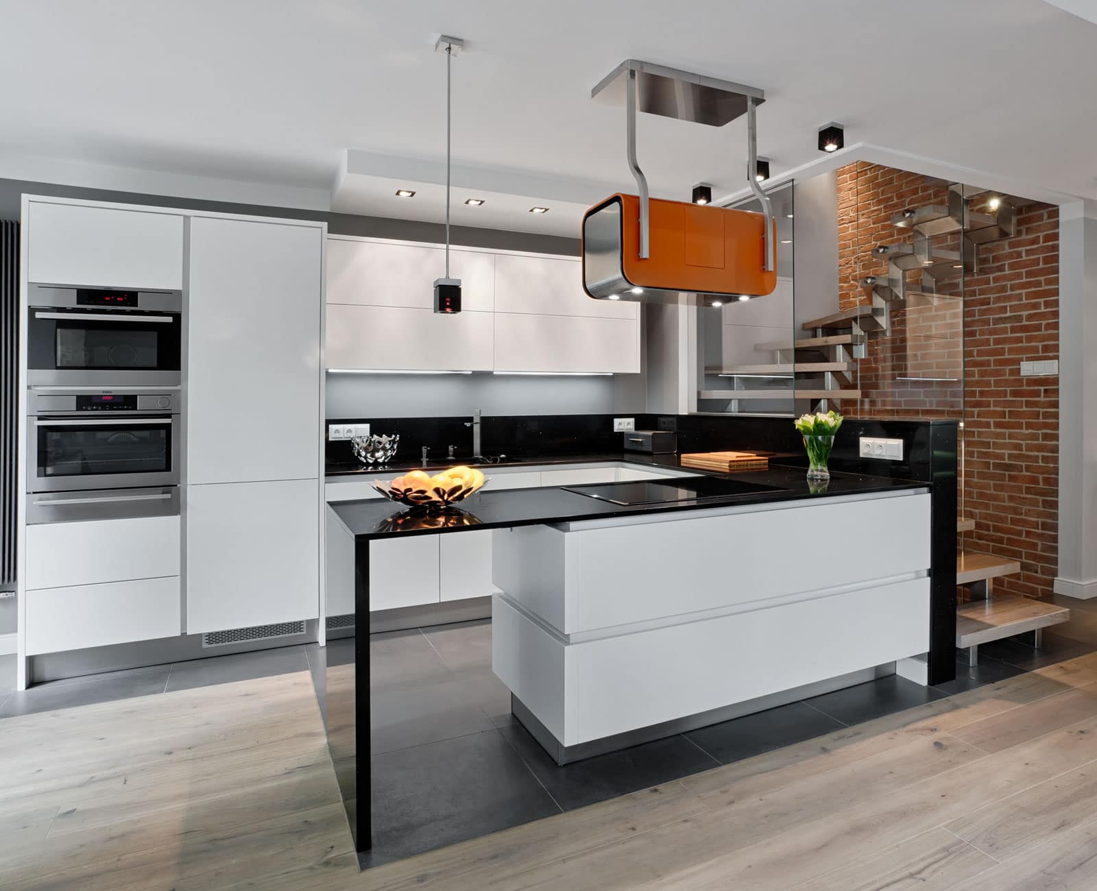 Odważne kolory w zestawieniu ze stonowaną bielą oraz ciemnym blatem definiują na nowo podejście do nowoczesnych przestrzeni.